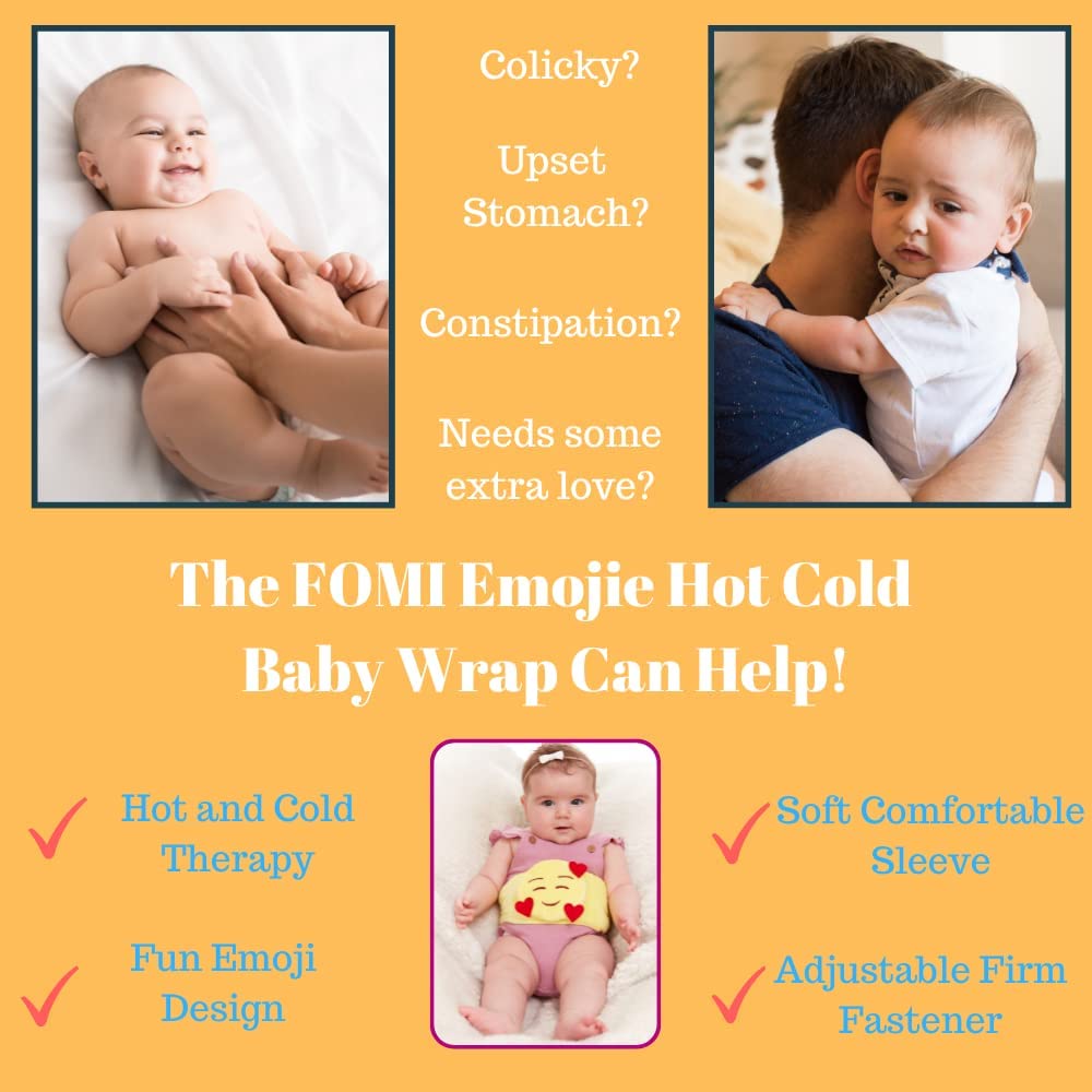 Baby Colic and Gas Relief by FOMI Care | Heated Tummy Wrap Belly Band for Upset Stomach, Constipation, Acid Reflux Pain Relief | Emoji Designed Hot Compress and Infant Swaddling Belt | Soothing