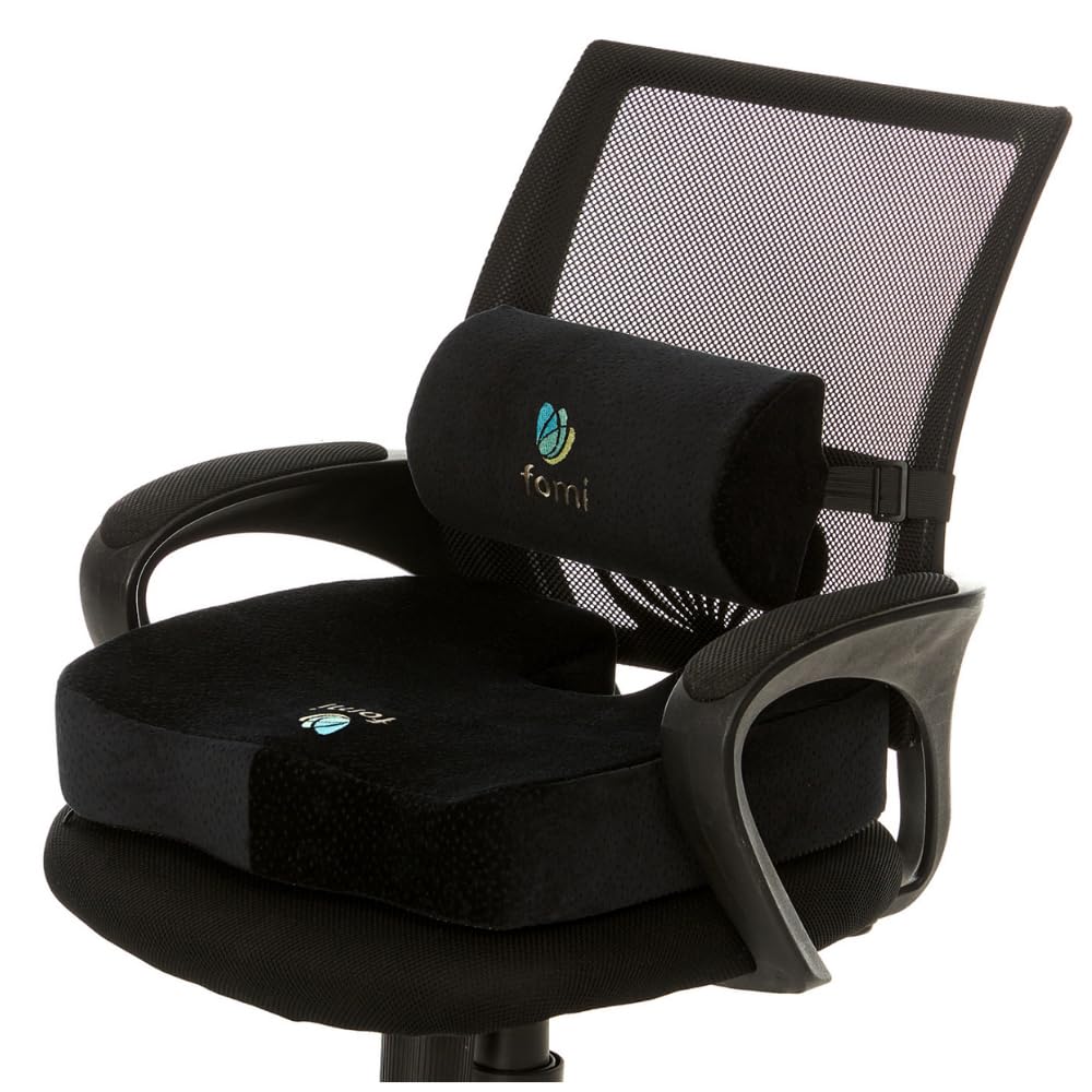 -28%FOMI Extra Thick Coccyx Seat Cushion and Back Support Combo | Large Memory Foam Seat Pad and Lumbar Pillow for Car, Office, Gaming Chair, Wheelchair | Sciatica, Tailbone Pain Relief—