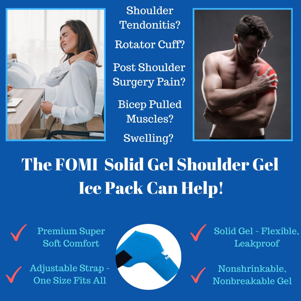 FOMI Premium Shoulder Hot Cold Solid Gel Ice Pack | Cooling Compression Therapy Wrap | Rotator Cuff, Tendonitis, Surgery Recovery Pain Relief | Comfortable Heating and Cooling Arm Compress